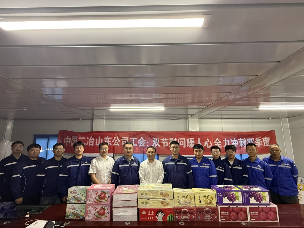雙節(jié)將至,為進(jìn)一步鼓舞一線員工士氣,全力確保年度目標(biāo)任務(wù)完成,9月23日,山東公司黨委副書(shū)記、紀(jì)委書(shū)記尹旭到二冶(山東)建工博興桂語(yǔ)朝陽(yáng)項(xiàng)目部開(kāi)展“雙節(jié)慰問(wèn)暖人心 全力沖刺四季度”雙節(jié)慰問(wèn)活動(dòng),為一線員工送去暖心福利。