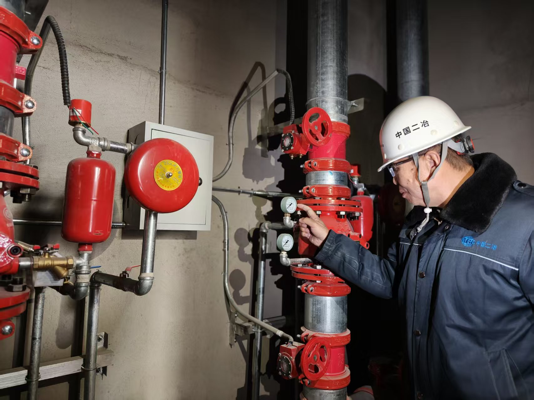 為保進度,章偉帶領團隊日夜奮戰(zhàn):白天扎根交叉作業(yè)面,對照圖紙反復校對管網(wǎng)線路,實時協(xié)調(diào)土建、鋼結(jié)構(gòu)安裝等多工種銜接;夜晚挑燈梳理變更,優(yōu)化施工方案,力求將工期影響降至最低。在他統(tǒng)籌下,項目成功規(guī)避多起潛在管線沖突,筑牢技術(shù)根基。