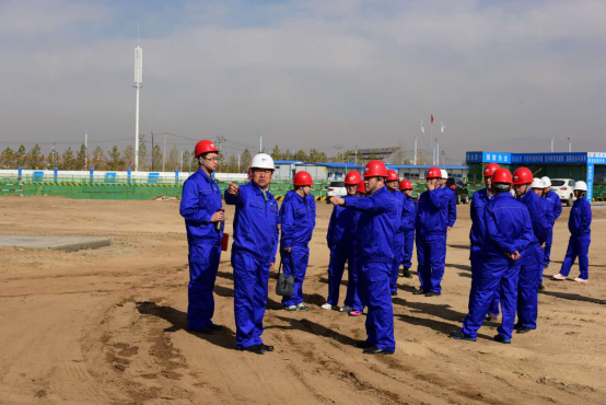梁俊文為公司領(lǐng)導(dǎo)介紹施工現(xiàn)場(chǎng)