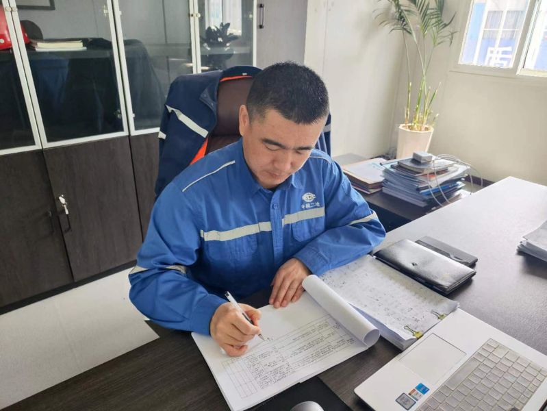 初見柴東海時是在今年的春節(jié)前。當(dāng)時天已經(jīng)很冷,施工現(xiàn)場人很少,很多工人已回家過年了。而他還在施工現(xiàn)場忙碌著。他中等身材,黝黑的臉膛,穿著中國二冶的冬季工作服,渾身散發(fā)著熱氣。他見人微微的一笑,并不多言語,但卻給你一份踏實感,莫名的就會對他產(chǎn)生信任。