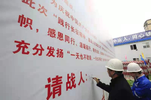 在學(xué)黨史、悟思想環(huán)節(jié),項(xiàng)目黨支部書記帶領(lǐng)大家參觀項(xiàng)目部黨建室,了解黨的光輝歷程;觀看中國二冶視頻宣傳片,共同回顧二冶的六十余載崢嶸歲月,見證冶金建設(shè)國家隊(duì)踐行“長征精神”,邁進(jìn)新征程、奮進(jìn)新時(shí)代的風(fēng)采,激發(fā)全體員工投身建設(shè)人民滿意工程的熱情與決心。活動(dòng)中,項(xiàng)目全體黨員在黨旗下重溫入黨誓詞,表示要踐行長征精神,建設(shè)人民滿意工程,更加堅(jiān)定作為一名共產(chǎn)黨員的理想信念;全體人員齊唱《我們走在大路上》,通過歌聲,南湖的航船,延安的寶塔,天安門的紅旗,深深地印在心里,井岡山的號(hào)角,西柏坡的誓言,南巡老人的講話,科學(xué)發(fā)展的強(qiáng)音,在耳邊回響,讓大家始終銘記革命烈士的堅(jiān)貞和不朽,以實(shí)際行動(dòng)來書寫“長征精神”,走好新時(shí)代的長征路,為公司高質(zhì)量發(fā)展不懈奮斗。