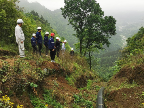 在辦實(shí)事、開(kāi)新局環(huán)節(jié),全體參建人員在《踐行遵義會(huì)議精神 建設(shè)人民滿(mǎn)意工程》的條幅上簽名,承諾以實(shí)事求是、民主團(tuán)結(jié)的遵義會(huì)議精神為引領(lǐng),充分發(fā)揚(yáng)‘一天也不耽誤,一天也不懈怠’ 的企業(yè)精神,以高度的責(zé)任感和使命感踐行央企責(zé)任擔(dān)當(dāng),履行光榮使命。中國(guó)二冶技術(shù)人員帶領(lǐng)甲方業(yè)主、媒體朋友參觀(guān)縣縣通天然氣管道建設(shè)項(xiàng)目在建分部。該項(xiàng)目總長(zhǎng)為187.25公里,項(xiàng)目建設(shè)內(nèi)容包括臺(tái)盤(pán)至劍河天然氣管道;鎮(zhèn)遠(yuǎn)至羊滿(mǎn)哨天然氣管道;羊滿(mǎn)哨至天柱天然氣管道;凱里至黃平天然氣管道 ;凱里至雷山天然氣管道。同時(shí)還包括施秉輸氣站、鎮(zhèn)遠(yuǎn)輸氣站、羊滿(mǎn)哨輸氣站、天柱輸氣站等9座輸氣站和爐山閥室、瓦寨閥室、桐林閥室、款場(chǎng)閥室、西江閥室等5座閥室及所需附屬設(shè)施。該項(xiàng)目負(fù)責(zé)人馬艷偉介紹到:“該項(xiàng)目途經(jīng)貴州省多個(gè)縣及古城,地勢(shì)險(xiǎn)峻,多為森林和陡坡,管道敷設(shè)要在懸崖和峭壁上開(kāi)展,中國(guó)二冶建設(shè)者們以‘遵義會(huì)議精神’為引領(lǐng),攻克一個(gè)個(gè)難關(guān),使項(xiàng)目建設(shè)取得了突破性進(jìn)展,長(zhǎng)輸管道的安裝成功,切實(shí)優(yōu)化了貴州省能源供給,為促進(jìn)地方經(jīng)濟(jì)社會(huì)發(fā)展起到了強(qiáng)有力的推動(dòng)作用。”