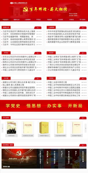 5月4日,公司黨群工作部特別策劃的“百年輝煌·薪火相傳”專題網(wǎng)頁正式上線,為深入學(xué)習(xí)宣傳貫徹習(xí)近平新時代中國特色社會主義思想,全面貫徹落實中國五礦、中冶集團(tuán)黨史學(xué)習(xí)教育動員部署會相關(guān)要求,號召全體黨員干部學(xué)黨史、悟思想、辦實事、開新局,不斷增強(qiáng)抓好學(xué)習(xí)教育的思想自覺、政治自覺和行動自覺,高標(biāo)準(zhǔn)高質(zhì)量完成學(xué)習(xí)教育各項任務(wù)增開了新渠道。專題網(wǎng)站下設(shè)9個欄目,分別是“重要論述”“上級精神”“學(xué)黨史”“悟思想”“辦實事”“開新局”“黨史書架”“百年輝煌·影像”“百年輝煌·百花齊放”欄目。專題網(wǎng)站旨在打造思想引領(lǐng)、政策解讀、信息傳遞、成果展示、經(jīng)驗分享等為一體的黨史學(xué)習(xí)教育網(wǎng)上信息平臺,引導(dǎo)公司廣大黨員干部將思想和行動統(tǒng)一到中國二冶黨委部署上來,切實做到學(xué)史明理、學(xué)史增信、學(xué)史崇德、學(xué)史力行,一步一個腳印扎實推動公司各項事業(yè)向前發(fā)展,以優(yōu)異成績迎接建黨100周年!