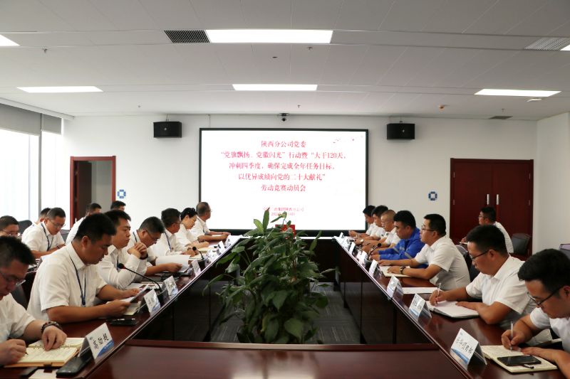 9月14日, 陜西分公司召開(kāi)了“黨旗飄揚(yáng)、黨徽閃光”行動(dòng)暨“大干120天,沖刺四季度,確保完成全年任務(wù)目標(biāo),以?xún)?yōu)異成績(jī)向黨的二十大獻(xiàn)禮”勞動(dòng)競(jìng)賽活動(dòng)啟動(dòng)會(huì)。分公司總經(jīng)理李春杰作動(dòng)員講話,副總經(jīng)理傅雅江主持會(huì)議。