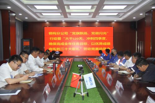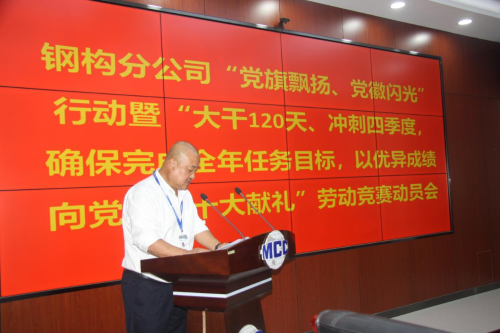 9月15日,鋼構(gòu)分公司黨委召開“黨旗飄揚(yáng)、黨徽閃光”行動暨“大干120天、沖刺四季度,確保完成全年任務(wù)目標(biāo)以優(yōu)異成績向黨的二十大獻(xiàn)禮”勞動競賽動員會。鋼構(gòu)分公司黨委書記、總經(jīng)理王志義發(fā)表講話,分公司紀(jì)委書記、副總經(jīng)理田廣林主持會議。