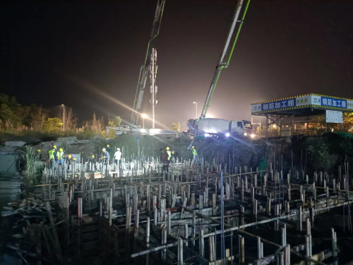 挑燈夜戰(zhàn)干勁高,不怕吃苦掀高潮。10月24日深夜,資陽騮馬新村安置房項目多層樓棟作業(yè)現(xiàn)場燈火如晝、奮楫正酣,700多施工人員奮戰(zhàn)一線?,F(xiàn)場澆筑混凝土振搗聲嗡嗡作響,作業(yè)人員正在澆筑2#樓基礎混凝土,此次澆筑方量為200立方米,澆筑時長達5小時。進入四季度以來,資陽安置房項目精心制定工期節(jié)點,倒排工期并分解到月計劃、周計劃,每周日組織召開專題會議對上周計劃進行盤點考核,獎優(yōu)罰劣,同時,公布下周任務計劃,現(xiàn)場形成了一股干勁兒,各分包單位爭先恐后追趕進度,掀起大干熱潮。