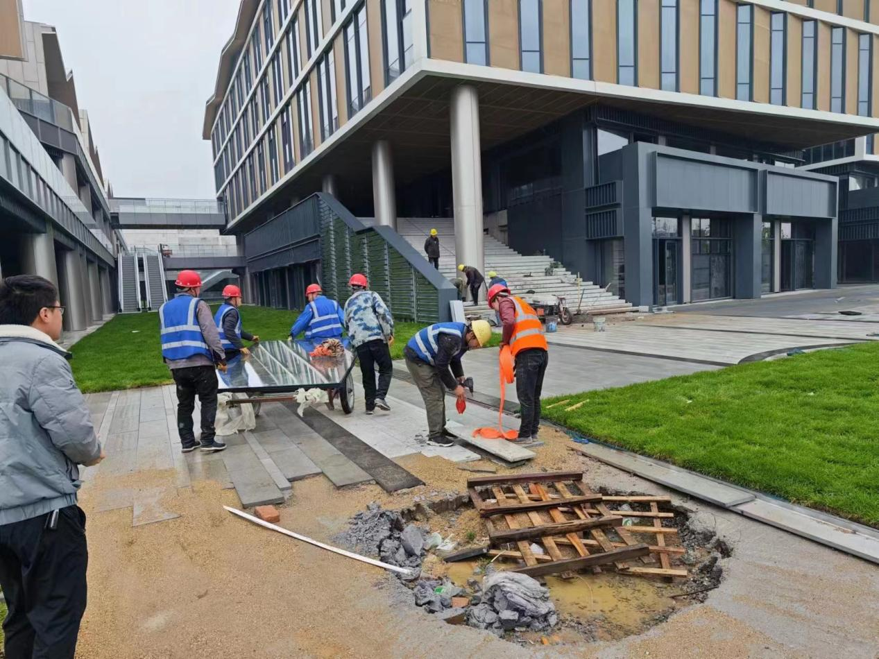在如意東路便民服務(wù)中心項目施工現(xiàn)場,項目負責(zé)人帶頭加班加點、爭分奪秒投入項目工作中。目前主體工程已全部完成,道路硬化完成,幕墻工程、水電安裝工程、消防安裝工程、精裝工程、景觀工程均在收尾中。確保進度的同時項目部細心施工,精益求精,堅持將安全文明施工落實到位,全力保障竣工驗收,確保雙過半。