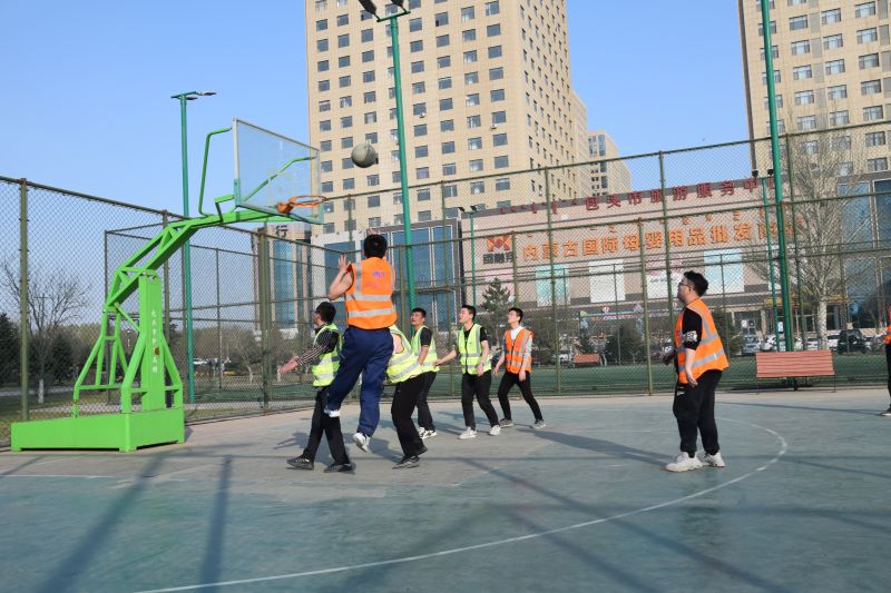城建分公司商務(wù)大廈項(xiàng)目部現(xiàn)有團(tuán)員青年13名,占項(xiàng)目在崗職工總數(shù)的65%。其中黨員7名,占團(tuán)員青年總數(shù)的54%。項(xiàng)目部團(tuán)支部自2019年成立后,緊扣黨建帶團(tuán)建,黨有號召團(tuán)有行動(dòng)的號令,團(tuán)員青年、青年黨員沖鋒在施工一線,闖關(guān)奪隘,在商務(wù)大廈、都市庭苑項(xiàng)目疫情防控、奮戰(zhàn)120天勞動(dòng)競賽中完成了多項(xiàng)施工節(jié)點(diǎn),青年黨員、團(tuán)員青年在施工中冒強(qiáng)風(fēng)頂暴雨,戰(zhàn)晴天斗嚴(yán)寒,晝夜奮戰(zhàn),團(tuán)員青年壓力大工作環(huán)境極其艱苦,為了緩解團(tuán)員的壓力,調(diào)動(dòng)黨員、團(tuán)員青年的積極性,項(xiàng)目部以“學(xué)黨史、悟思想、辦實(shí)事”為主線,由團(tuán)支部組織,展開籃球?qū)κ仲??;顒?dòng)伊始,團(tuán)支部書記詳細(xì)介紹了本次半場籃球比賽的規(guī)則,全程實(shí)行記分制,進(jìn)球一顆得一分,不進(jìn)球不得分,最先達(dá)到5分獲勝。4月22日下午5點(diǎn)30分,活動(dòng)首先通過轉(zhuǎn)球形式分為兩隊(duì),兩隊(duì)隊(duì)員摩拳擦掌,躍躍欲試,兩隊(duì)緊盯裁判哨聲和籃球,只聽哨聲一響,籃球飛躍空中,兩隊(duì)隊(duì)員奮力拼殺搶球,拉開了籃球?qū)κ仲?,本著友誼第一比賽第二的賽事原則,隊(duì)員們密切配合,一個(gè)眼神一個(gè)傳球動(dòng)作都是隊(duì)員默契傳球的暗號,賽場上你爭我奪,隊(duì)員們身形敏捷,輾轉(zhuǎn)騰挪,經(jīng)過激烈比拼,比賽采用三局兩勝制,最終黃馬甲隊(duì)贏得2局獲勝。
