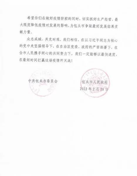 2月23日,中國二冶向包頭市人民政府遞交了《關(guān)于全力參與我市抗疫阻擊戰(zhàn)的請愿書》并表示,作為駐包建筑央企,中國二冶在做好自身防疫,統(tǒng)籌生產(chǎn)經(jīng)營,保持經(jīng)濟穩(wěn)增長的同時,誠愿積極響應(yīng)市委市政府號召,勇?lián)姑?,沖鋒在前,主動參與到各項疫情防控重點工作中。如市政府有緊急抗疫任務(wù),或應(yīng)急設(shè)施建設(shè)任務(wù)。中國二冶將第一時間,迅速行動,調(diào)集駐包單位各方面資源力量,充分發(fā)揮建筑企業(yè)的特點和優(yōu)勢,全力以赴為我市疫情防控貢獻央企力量。