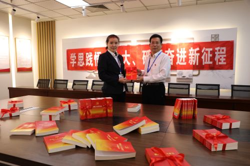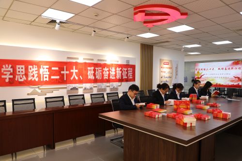活動(dòng)中,分公司黨委書(shū)記郭泗東向基層黨支部書(shū)記代表贈(zèng)送了《黨的二十大報(bào)告學(xué)習(xí)輔導(dǎo)百問(wèn)》《二十大黨章修正案學(xué)習(xí)問(wèn)答》《黨的二十大文件匯編》《黨的二十大學(xué)習(xí)筆記本》等書(shū)籍。在黨建活動(dòng)室,黨員們?cè)颈?、逐字逐句學(xué)習(xí)黨的二十大精神和黨章,邊學(xué)、邊思、邊寫(xiě),將學(xué)習(xí)筆記及時(shí)記錄到筆記本上,確保學(xué)習(xí)入心、入腦,不走形式。學(xué)習(xí)過(guò)后,與會(huì)人員交流分享心得體會(huì),紛紛表示作為一名新時(shí)代共產(chǎn)黨員,要以黨的二十大精神為指引,立足崗位做貢獻(xiàn),踔厲奮發(fā)建新功,建設(shè)人民滿意工程,為全面建設(shè)社會(huì)主義現(xiàn)代化國(guó)家、企業(yè)高質(zhì)量發(fā)展貢獻(xiàn)力量。